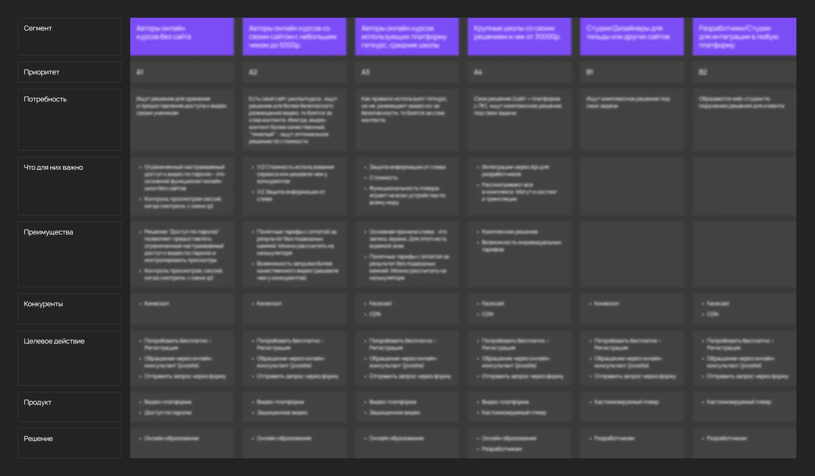 После детального анализа была создана таблица, отображающая различные сегменты аудитории, чтобы лучше понять их потребности и ожидания.