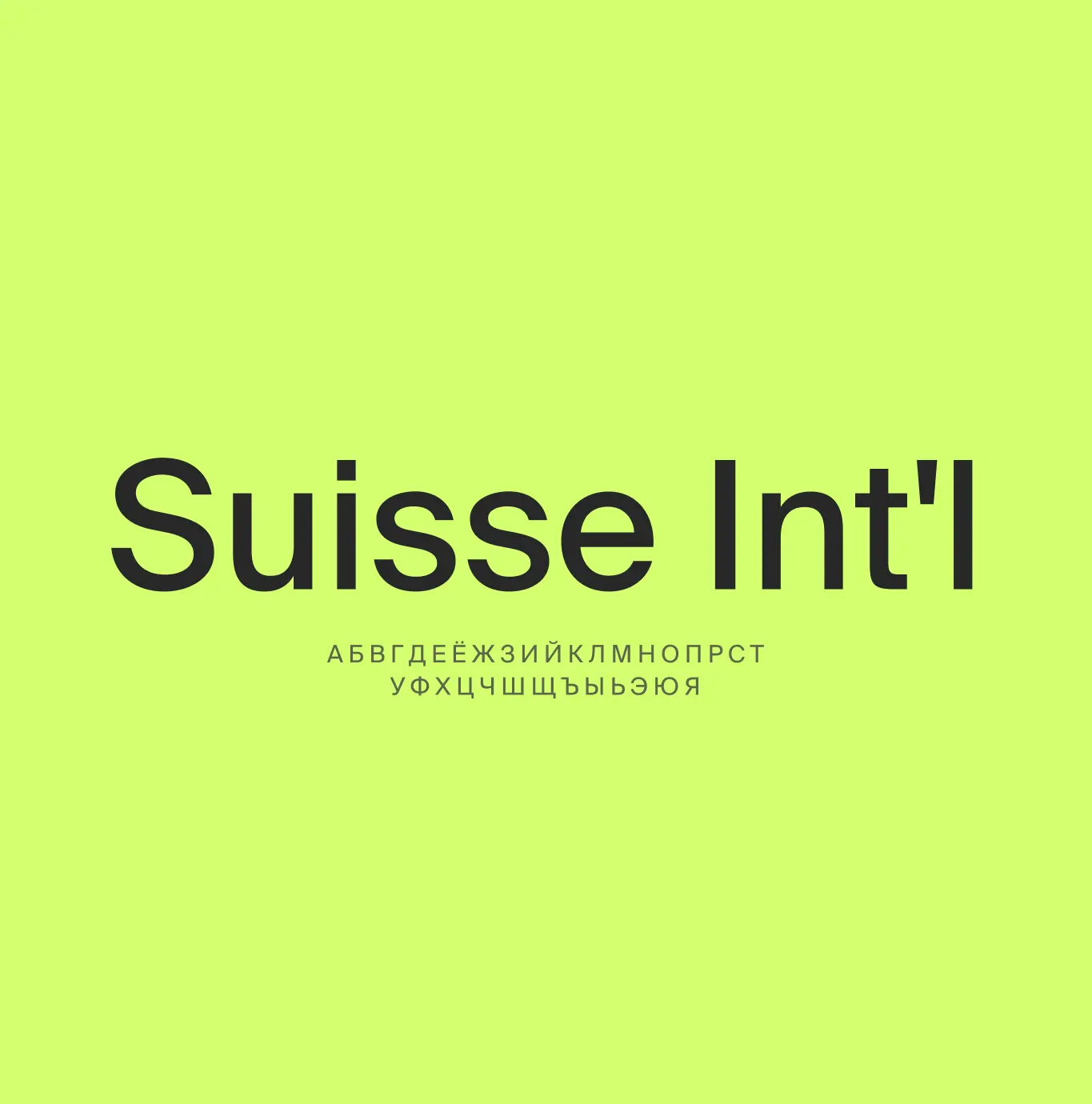 Suisse Int’l — современный гротеск, созданный студией Swiss Typefaces. По визуальному характеру Suisse Int’l относится к швейцарскому стилю.