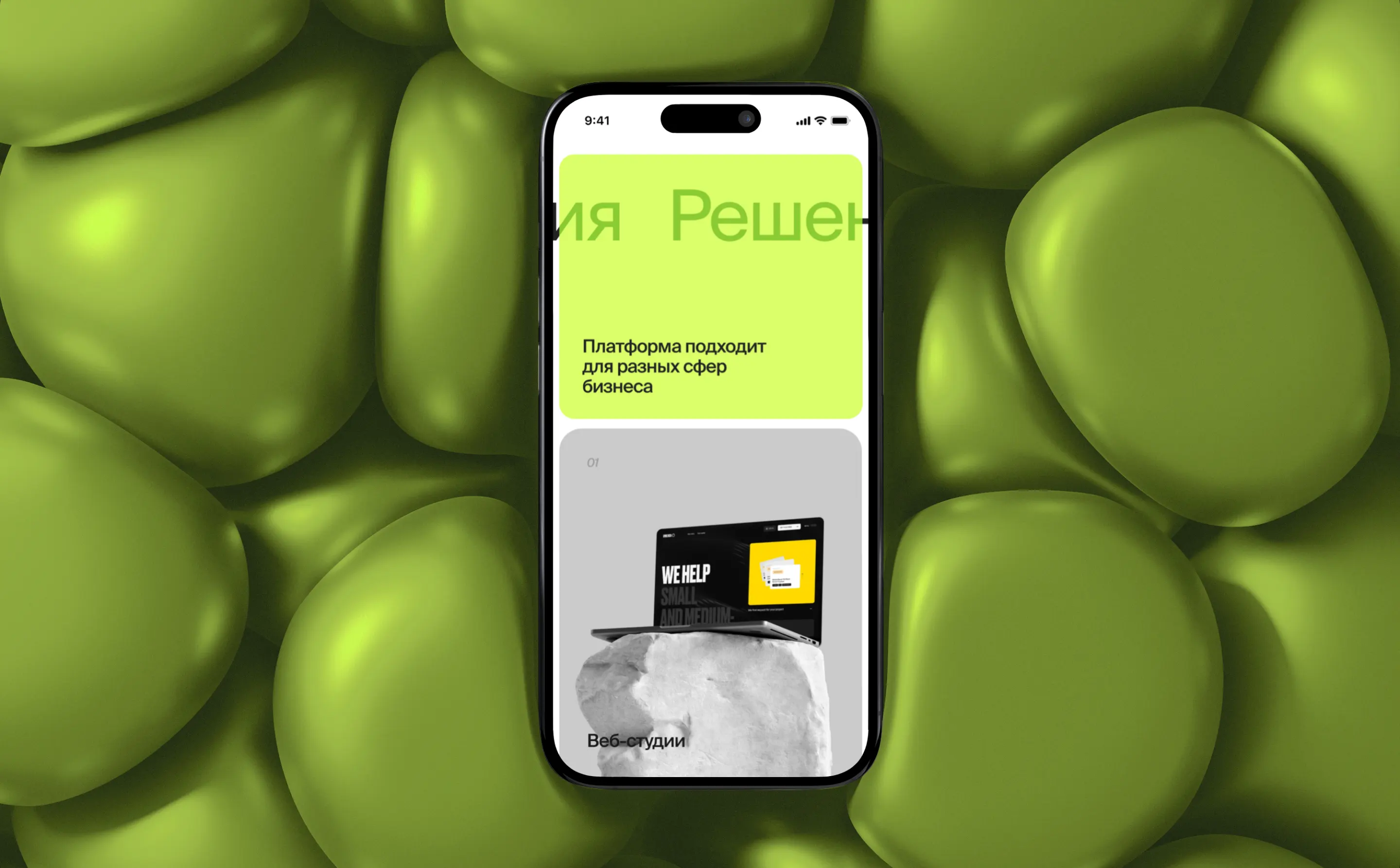 - Добавили минималистичные анимированные графические элементы на первый экран для вовлечения пользователя в дальнейшее взаимодействие с сайтом.